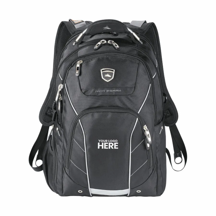 The High Sierra Elite Fly-By 17 Computer Backpack features a checkpoint-friendly laptop compartment to make airports a breeze. Offering a large, multi-compartment design. it also features a Cushion Zone™ padded computer compartment; an adjustable sling system in the laptop compartment that protects up to 17 inch laptops and a dedicated Tech Zone for your iPad or other tablet. Comes with an organizer compartment with a mesh pocket, pen pockets and a key fob, plus multiple side pockets, an easy-access media player pocket and a front zippered accessory pocket. Yoke-style, S-shaped Vapel™ mesh padded shoulder straps with Collar Comfort™ edge, Comfortable Vapel™ mesh padded back panel with Airflow™ and trolley pass-through. Includes lifetime warranty.