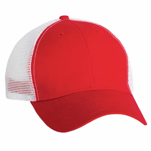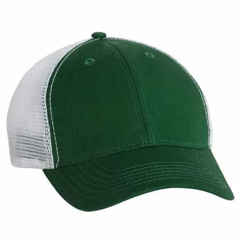 Chino Twill Front Panels, Mesh Sides and Back, Bio-washed Structured, Mid-profile, Six Panel, Contrast Taping, Pre-curved Visor, Sewn Eyelets, Velcro Closure, One Size