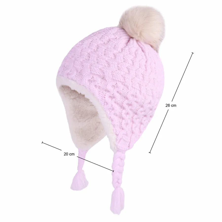 - Cutesy Pom Acrylic Kid Beanies with Earflaps