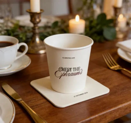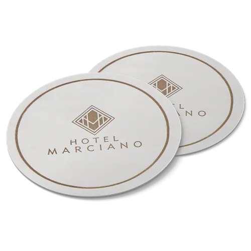 Absorbent paper debossed coasters are small, thick paper coasters featuring a pressed or imprinted design. Their absorbent quality effectively prevents moisture and condensation from damaging surfaces when placed under cups or glasses. The debossed pattern adds both functionality and a decorative element to these coasters, making them ideal for protecting tabletops while adding a touch of style in various settings like homes, bars, restaurants, or events.