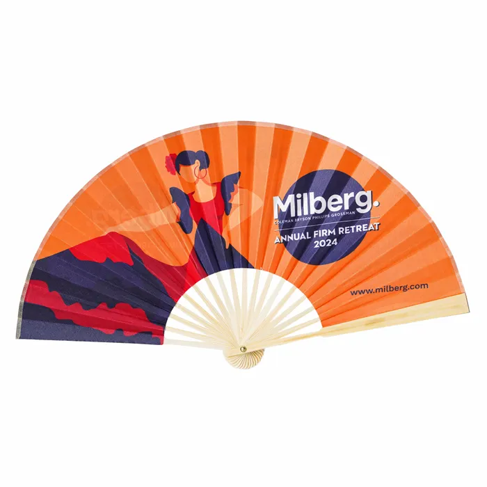 A custom accordion hand fan is a hand fan with a unique folding design that allows it to expand and collapse like an accordion. This style of fan provides a compact and portable option for keeping cool and is often used as a decorative or promotional item.