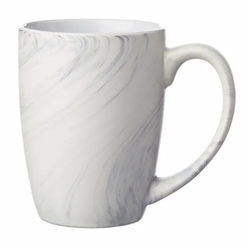 10 oz. Ceramic Mugs. Marble Glaze Finish. Smooth Glossy White Interior. Recommended Hand Wash Only