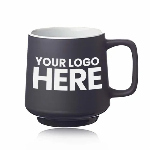 15 oz. Ceramic Mugs. Stackable Up to 4 on One Row. Matte Grey Finish with Pop Color Interior of Your Choice. Recommended Hand Wash Only