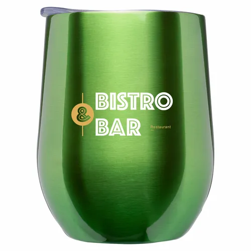 Introducing the Gleam Elegance Insulate Wine Glass the perfect blend of sophistication and functionality for wine enthusiasts. Crafted with premium stainless steel in a popular finish, this stemless wine glass with lid keeps your drinks hot for up to 3 hours (approx.) and refreshingly cold for up to 5 hours (approx.) with its double-wall vacuum insulation. The spill-proof lid ensures worry-free sipping, making it ideal for outdoor gatherings and picnics. BPA-free and designed with a stable stemless shape, this wine glass offers both safety and style. Elevate your wine-drinking experience and savor every sip in perfect taste and temperature with Stemless Wine Glass - order yours today!