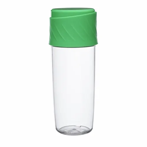 16 oz Plastic Water Bottle. Screw On Lid With Removable Storage Box. Storage Box Can Be Used for Snacks, Fruits, and Protein Powders, Making It the Perfect Item for Gym Lovers. BPA Free. Storage Box Measurements: 2.75" Diameter X 1.50"H