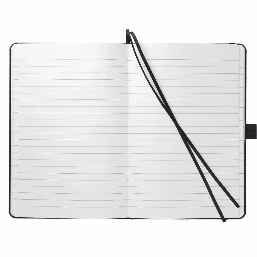 The 5.5 x 8.5 FSC Recycled Marine Bound Journal features a uniquely crafted cover material, Repreve, which is made with recycled ocean plastic and waste collected from coastlines of developing countries. Features color-matching elastic closure, pen loop and ribbon page marker. Includes 96 sheets of white lined FSC recycled paper. Through a partnership with 1% For The Planet, one percent of sales of all EcoSmart products are donated to environmental nonprofits.