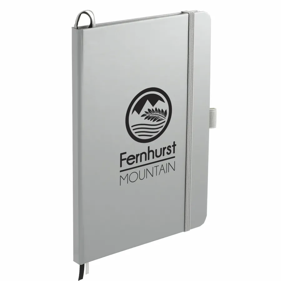 The 5.5 x 8.5 FSC Mix Bound Journal features a FSC-certified paper hard cover with 80 sheets of white FSC-certified, soy-based ink lined paper. Includes color-matching elastic closure, pen loop and ribbon page marker. Through a partnership with 1% For The Planet, one percent of sales of all EcoSmart products are donated to environmental nonprofits. Digital Inkjet not available on Silver color.