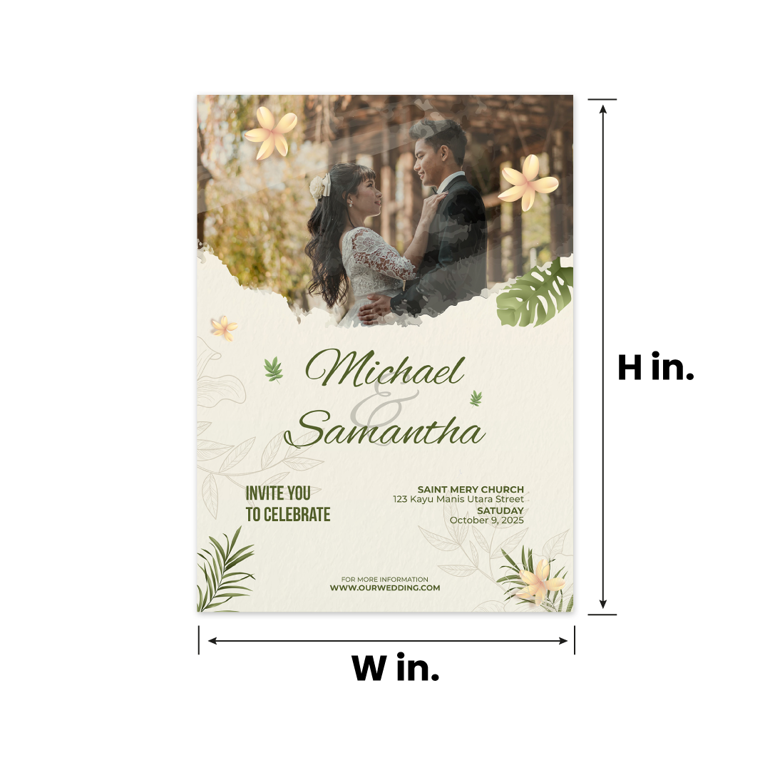 • Set the Tone for Your Big Day with Custom Wedding Invitations Make a lasting first impression with beautifully crafted wedding invitations that reflect your love story and style. Whether you're planning a classic ceremony or a modern celebration, these customizable cards offer elegant finishes and premium materials to match your vision. Add your names, wedding details, or a heartfelt message and choose from foil accents, embossed textures, or full-color printing to make each invite unforgettable. Perfect for formal weddings, destination events, or intimate gatherings, these invitations help you share the joy with grace and sophistication.