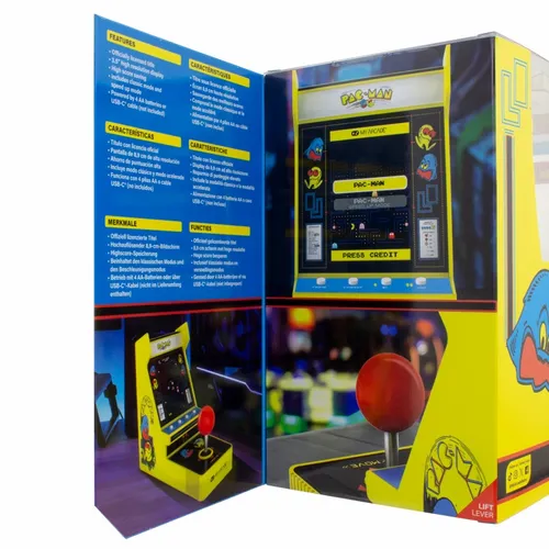 High-resolution 3.5" full-color vertical display, featuring eye-catching artwork inspired by the nostalgic PAC-MAN arcade cabinet! Play your favorite game on the go and relive those classic arcade moments anytime, anywhere. Whether you power it with 4 AA batteries (not included) for portable fun or connect it with a USB-C cable Type-C cable (not included for stationary play, this device is a must-have for any game room, office, or display case. Bring a touch of retro gaming magic to your space.