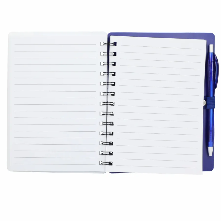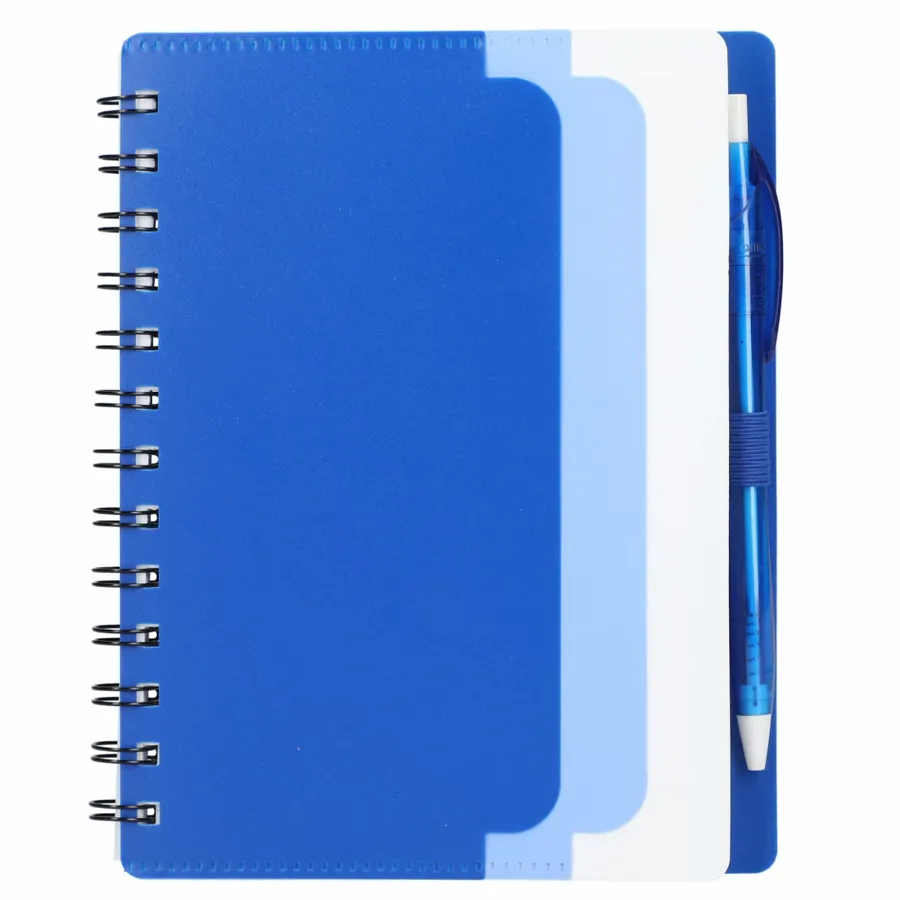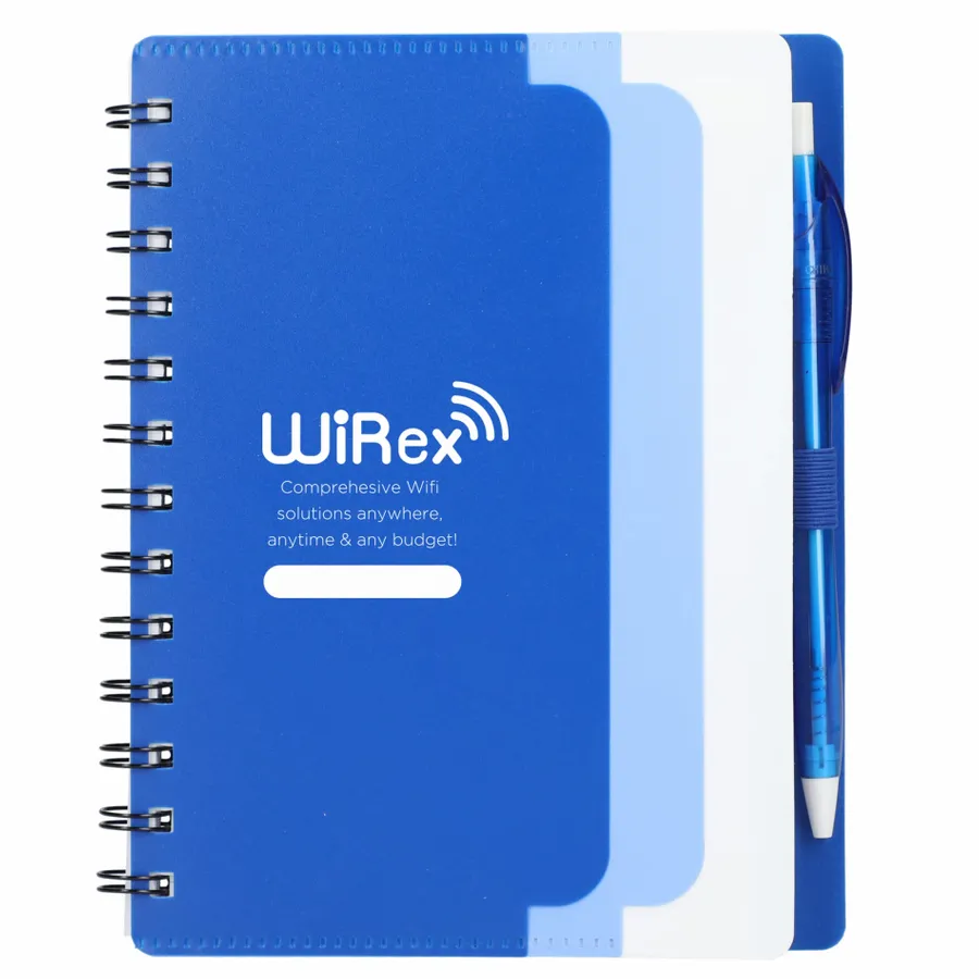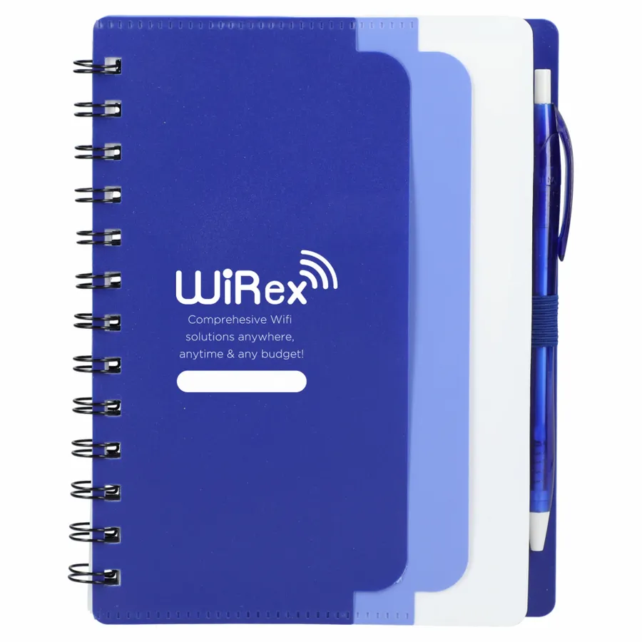 Discover the eco-conscious choice with the 5 x 7 Recycled Dual Pocket Spiral Notebook with Pen. Its 100% recycled PP cover includes dual front pockets for document storage, all within a practical spiral design. Featuring 70 sheets of recycled white lined paper, a color-matching pen loop, and an RPET color matching pen with smooth black ink, click action, and a 1mm tip providing 600 meters of writing length. As part of our commitment through 1% For The Planet, one percent of sales from all EcoSmart products contribute to environmental nonprofits. Opt for sustainability in your note-taking. Note that pens are packed separately.