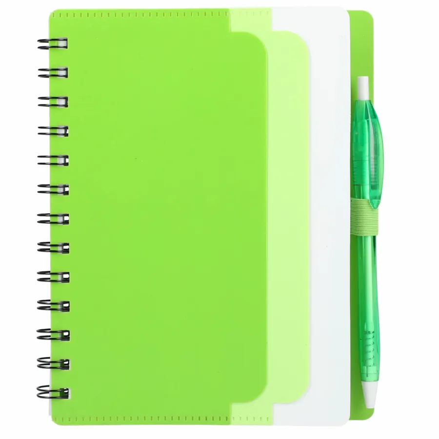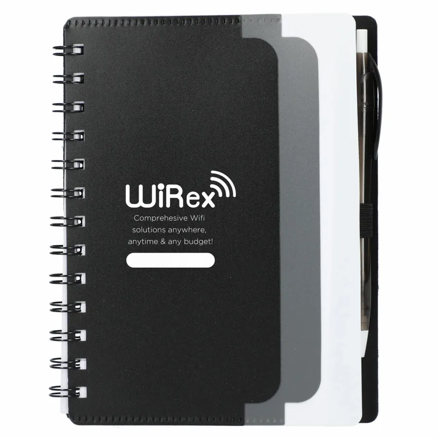 5 x 7 Recycled Dual Pocket Spiral Notebook w Pen
