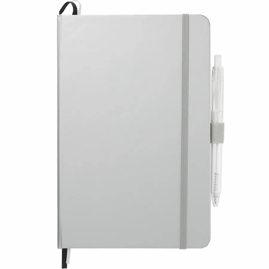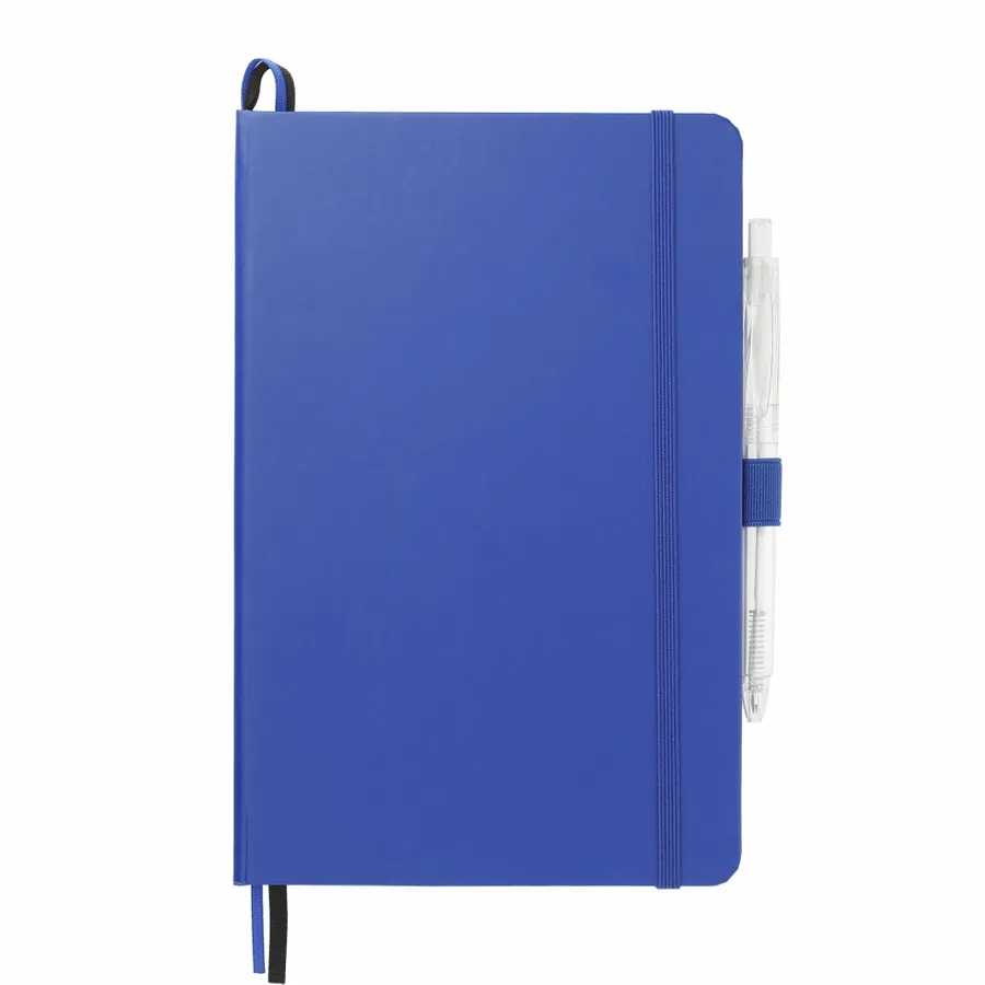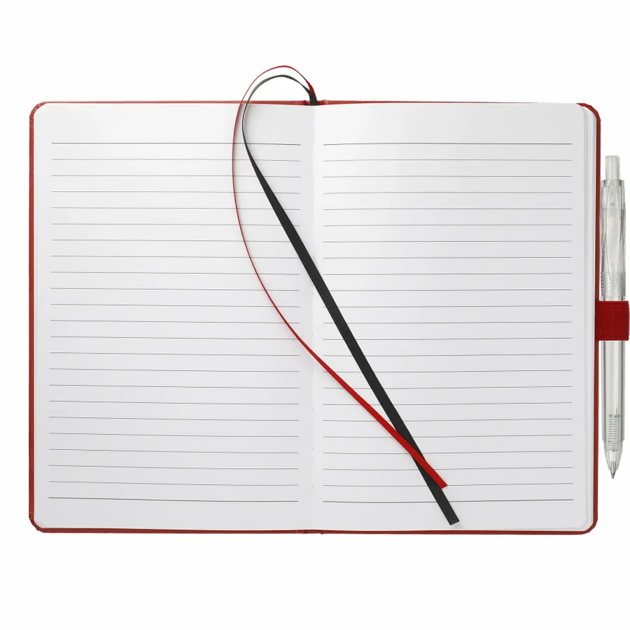 The 5.5 x 8.5 FSC Mix Bound Journal Set includes the 5.5 x 8.5 FSC Mix Bound Journal (2800-82) and FUNCTION RPET Quick-Dry Gel Pen (6003-29). The set features a FSC-certified paper cover with 80 sheets of white FSC-certified soy based ink lined paper. Includes color-matching elastic closure, pen loop and ribbon page marker. Through a partnership with 1% For The Planet, one percent of sales of all EcoSmart products are donated to environmental nonprofits.