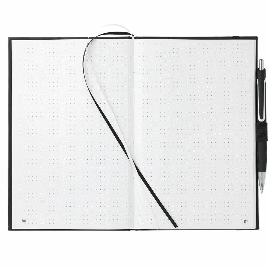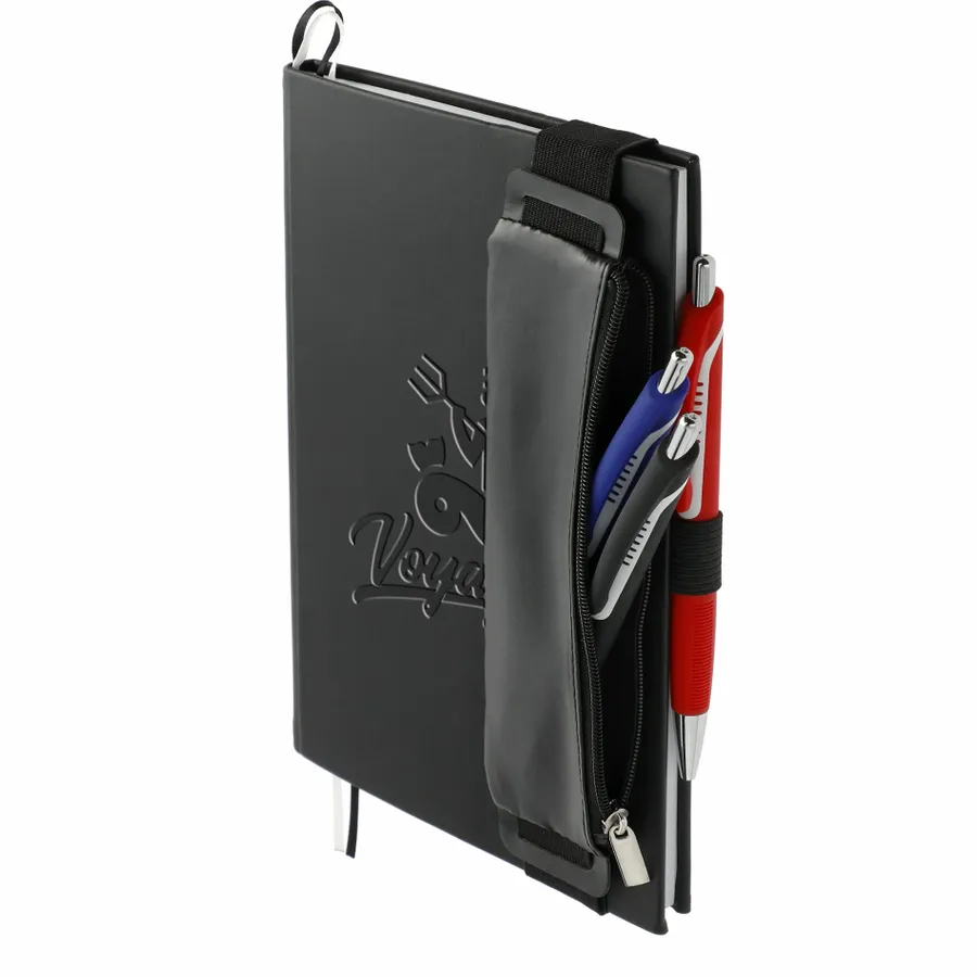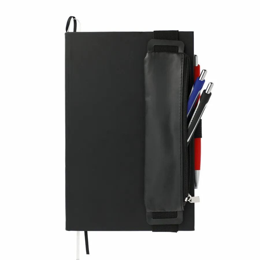 The 5.5 x 8.5 FUNCTION Bulleting Notebook Bundle Set includes the 5.5 x 8.5 FUNCTION Bulleting Notebook and zippered pen pouch with three gel pens: black, red and blue with color-matching gel ink. Its the perfect notebook for staying organized. Features a square, cornered hard-bound cover with color-matching elastic closure and pen loop. Double ribbon page markers. 80 sheets of perforated dotted and numbered pages.