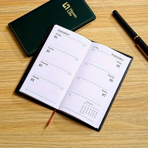 A compact and stylish planner with a durable PU leather cover, perfect for on-the-go organization and note-taking.