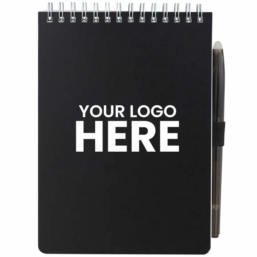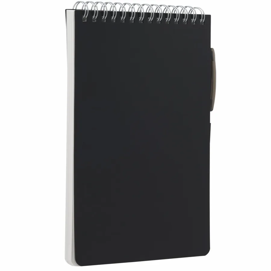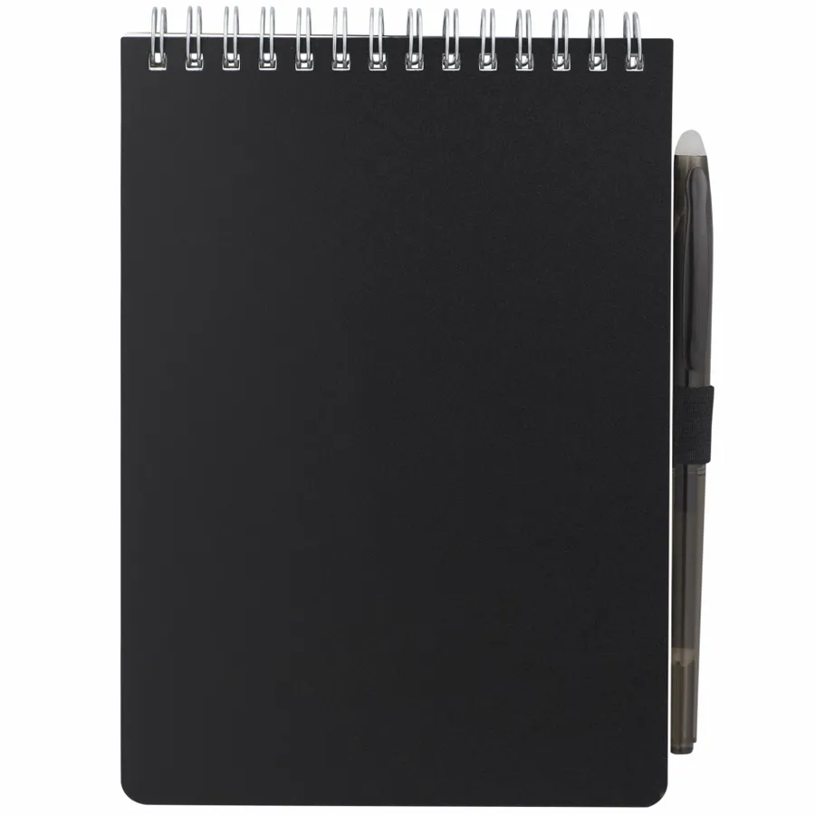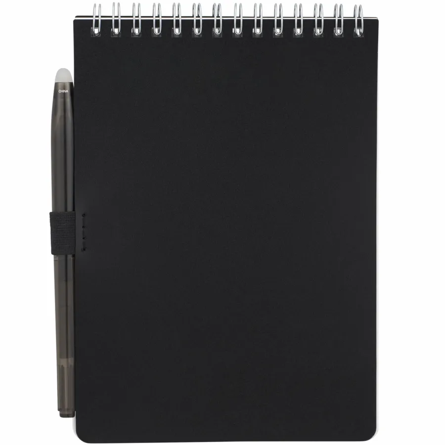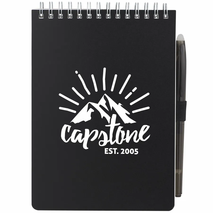 The 5” x 7” Mineral Stone Field Reporter Notebook with Pen features a recycled PP cover, 64 sheets of lined stone paper and silver wire binding. Includes a RPET erasable pen with black ink and elastic pen loop. Through a partnership with 1% For The Planet, one percent of sales of all EcoSmart products are donated to environmental nonprofits. Note that pens are packed separately.