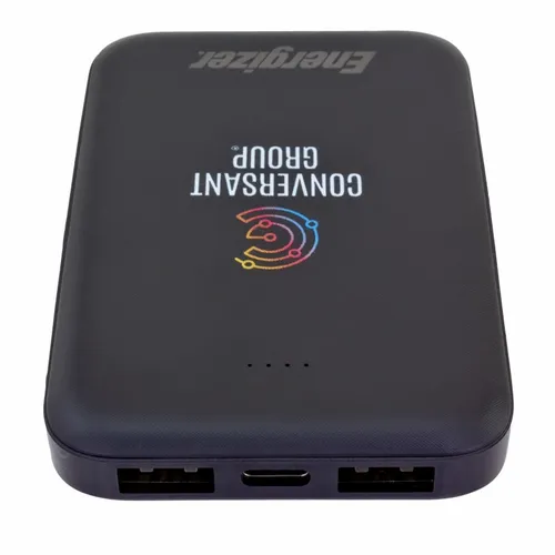 A great looking Energizer power bank with 5,000 mAh battery capacity. It's a great device for daily use for any busy professional. Specifications: Model 'Name: UE5005/ Cell Type: Lithium Polymer/ Battery-Capacity: 5OOO mAh/18.5Wh(Max.)/ Rated Input: USB-C 5V=2A/ Rated Output 1: USB-A 5V=2.1A/ Rated Output 2: USB-A 5V=2.1A/ Rated Output 3: USB-C 5V=2A/ Total Output: 10.5W(Max.)