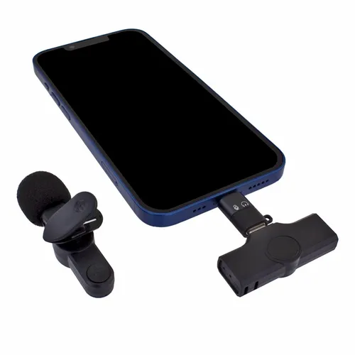 This is a breakthrough wireless microphone with real-time transmission and synchronization. Designed to be user-friendly for video vloggers, content creators, interviewers, and lecturers. The microphone consists of a transmitter and receiver that will automatically connect. Just clip the wireless microphone on a shirt collar or lapel and plug the receiver into a compatible smartphone device. No need for a third-party app or wireless connection.
