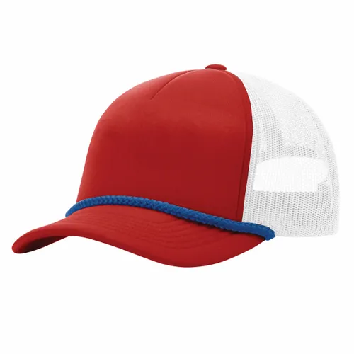 Front: 53% Polyester/47% Cotton Back: 100% Polyester Foam Twill Fabric,Trucker Mesh Structured, Five-panel, Low Pro Profile with Braid, 3″ Crown Pre-curved Bill Adjustable Snapback Closure
