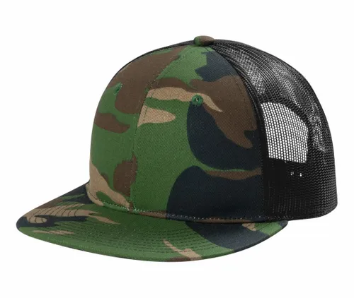 Fabric 100% cotton twill front panels and bill (Solids), 100% polyester mesh back panels; 65/35 polyester/cotton twill front panels and bill (Heather Grey) Structure Structured Profile High Closure 7-position adjustable snapback