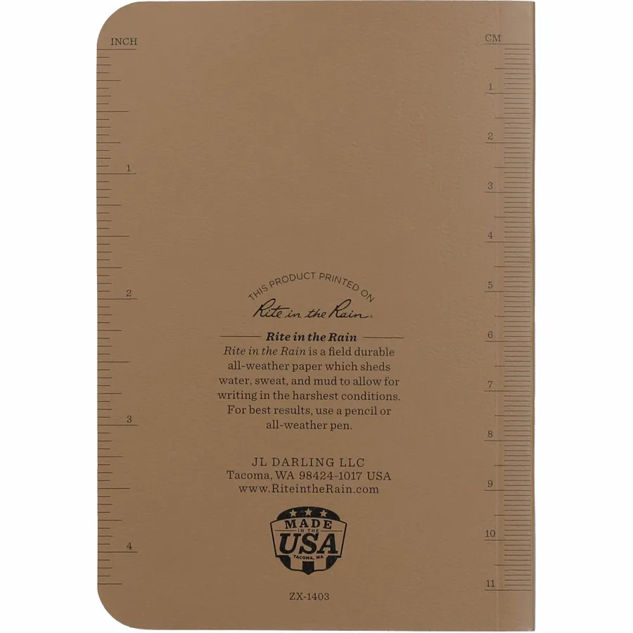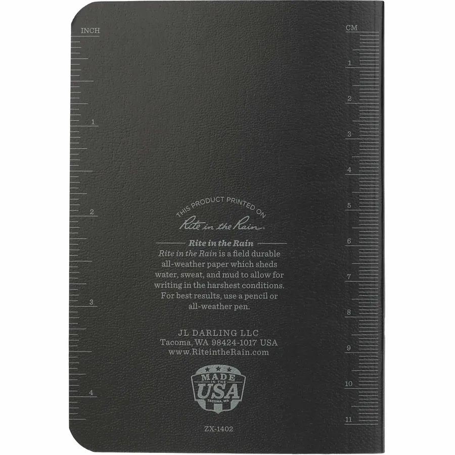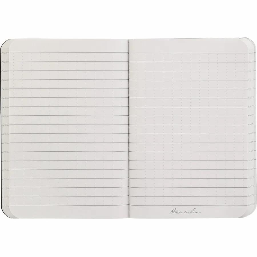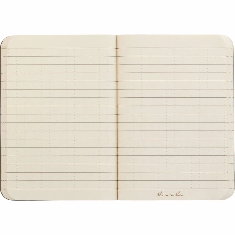 The 3.5 x 5.25 Rite in the Rain Soft Cover Notebook is fully prepared for any challenge mother nature throws at it. This notebook features a field-flex cover to protect your notes from scratches and stains and impact-resistant. Perfect bound enclosed spine. Includes 56 sheets/112 pages of white lined paper. For the best experience, when wet or dry use pencils, Rite in the Rain pens, wax markers, crayons or oil paint. When dry only, use permanent markers or standard ballpoint pens.