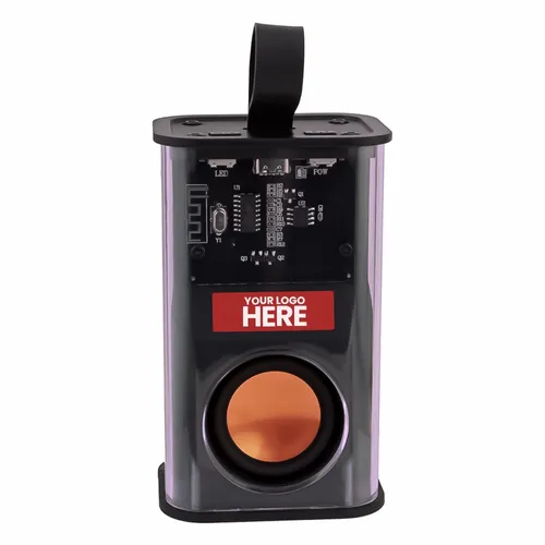 A perfect gift for tech enthusiasts who appreciate the inner workings of electronics. The clear outer case allows a user to see the speaker's circuitry inside the case while listening to their favorite tunes. The other side has a light panel with multiple fun light pattern sequence options. Specifications: Charging Voltage of Speaker: 5V/1A Maximum Audio Power: 5W Response Frequency: 70Hz-18KHz Wireless Distance: 10M Battery Capacity: 500 mAh (3.7V)