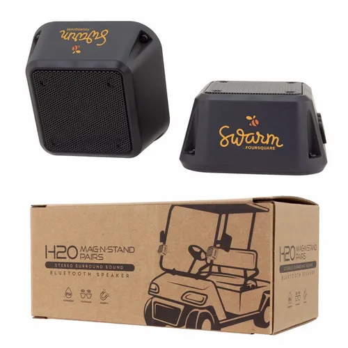 This portable speaker pair features TWS functionality. Synced two units, it creates unparalleled surround sound. Comes with a built-in super-strong magnet, making it easy to attach to golf carts and any metal surface. With its compact size, IPX4 water-resistant design, and powerful sound, it's the perfect choice for golfing and other outdoor activities.