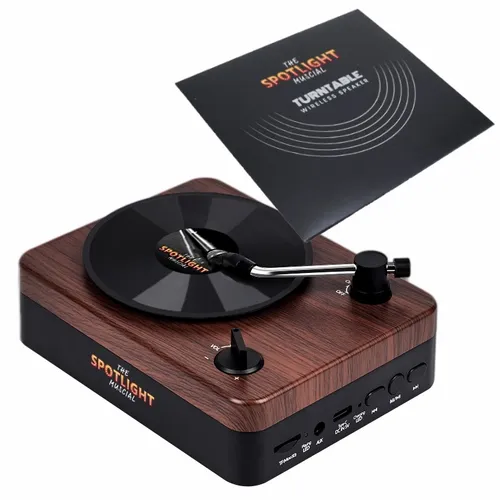 The wireless Turntable Speaker adopts a classic retro design, combined with perfect sound quality to bring you an excellent audio experience. The Turntable Speaker is packaged in a gift box and can be decorated with a custom decal on the faux vinyl record and your logo printed in full color on the side of the Turntable Speaker.